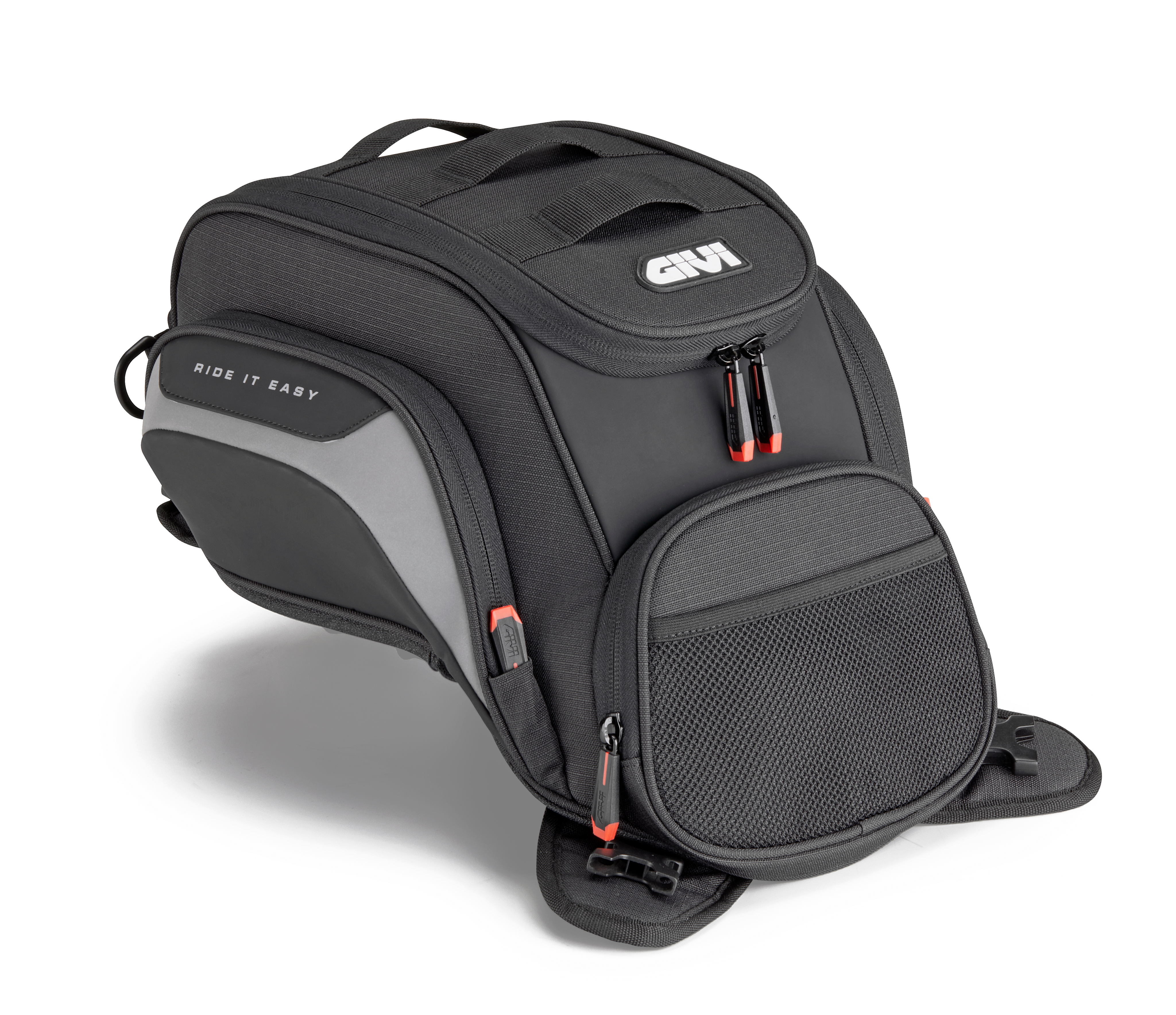 EASY‑T tank bag expandable from 12 to 16 L with Tanklock system.